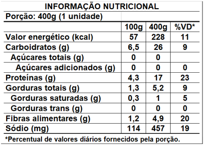 INGREDIENTES: peito de frango, cenoura, quinoa em grãos, grão-de-bico, chuchu, cebola, sal, alho, óleo vegetal e salsa fresca.