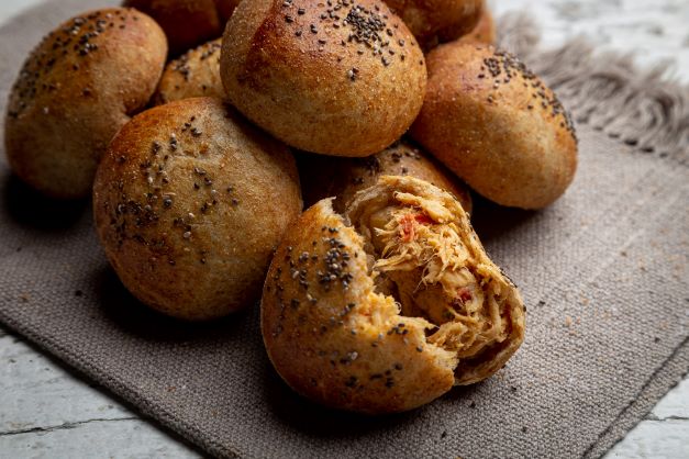 21 lanches embalados individualmente (3 de cada sabor descrito abaixo):